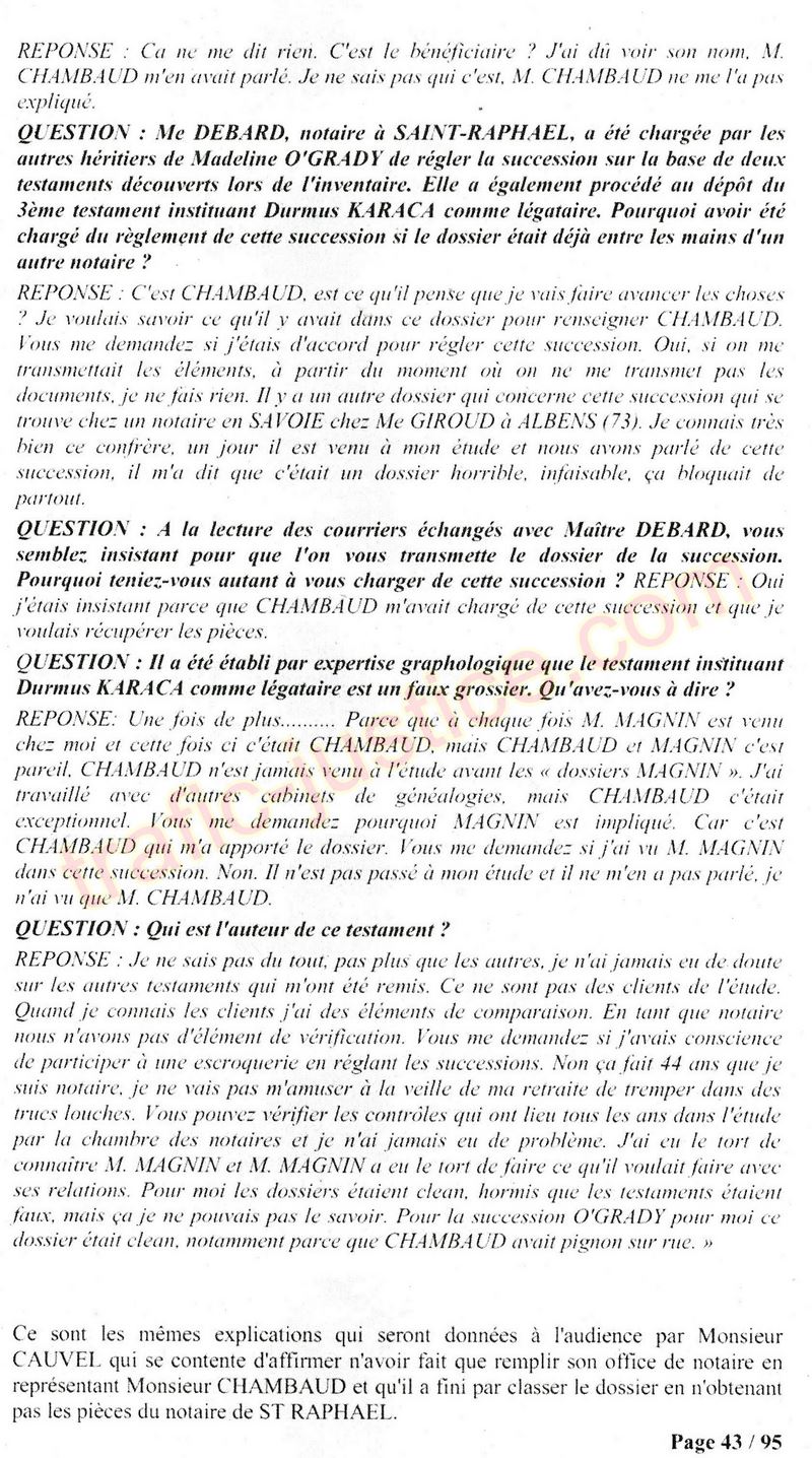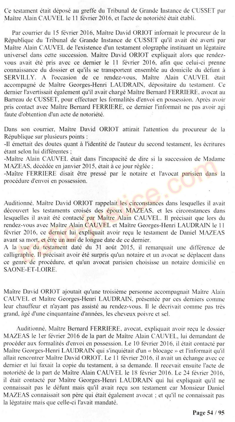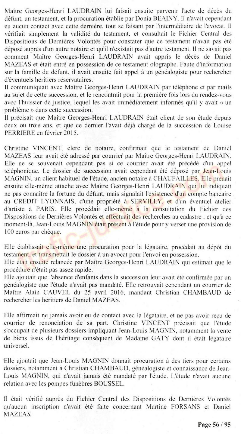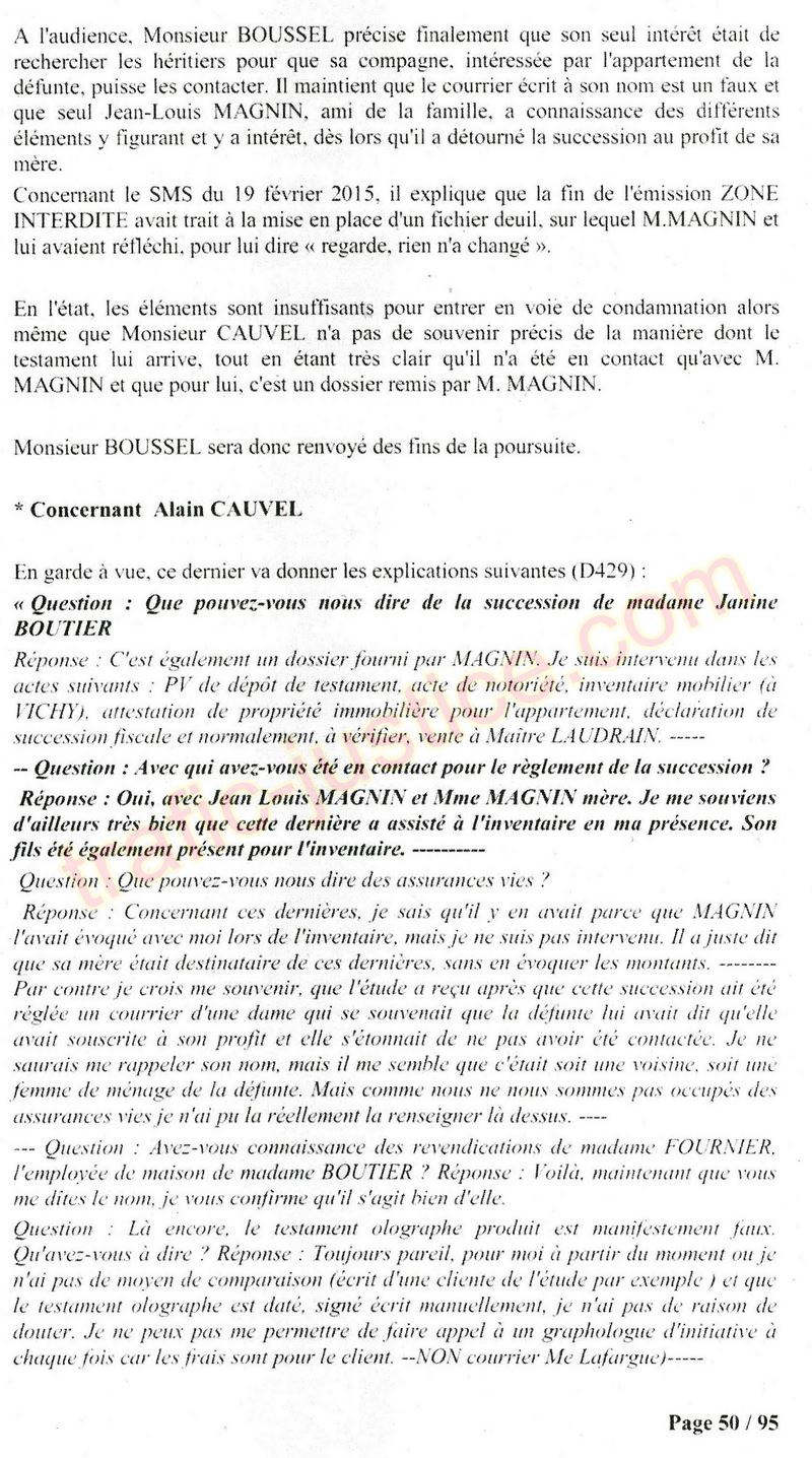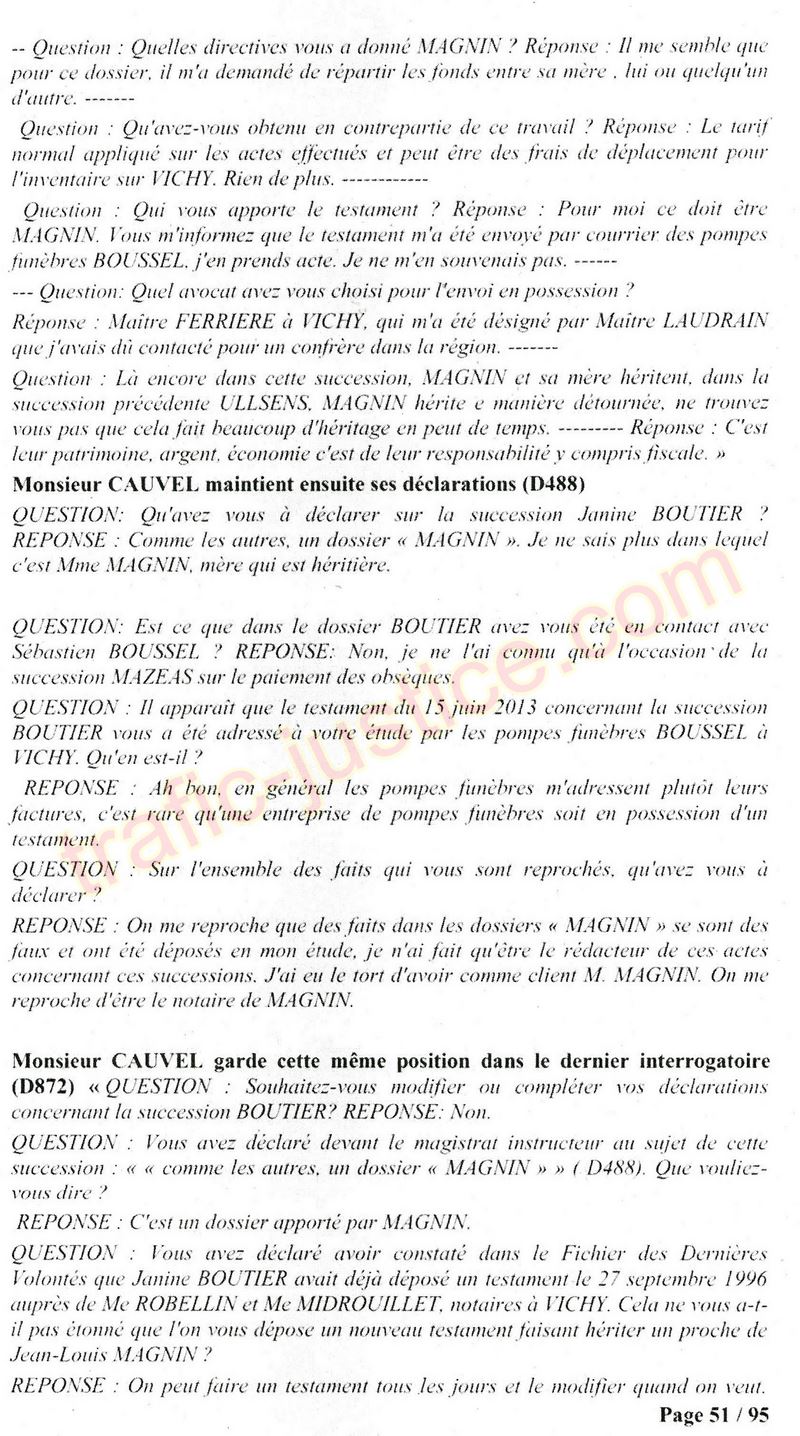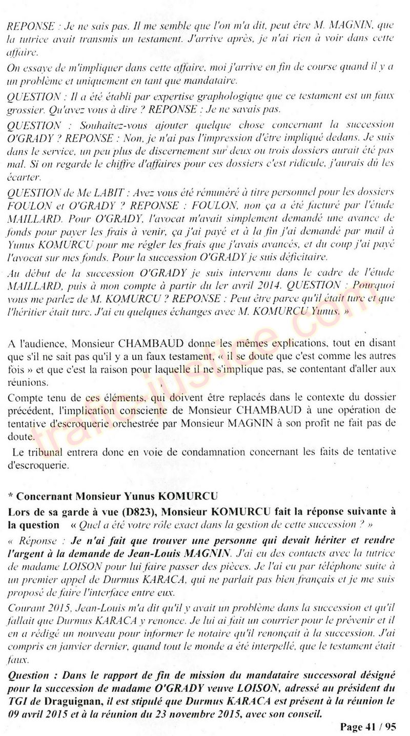A Cusset (banlieue de Vichy) au lieu de les juger pour crimes de faux pour les détournements avec faux testaments, ils passent en correctionelle avec une quasi impunité. Des prescriptions des spoliés en découlent ! Alors que le notaire MAGNIN est un récidiviste avec un complice actif. (8 ans pour juger cette affaire ! Pourquoi pas après leur mort ?