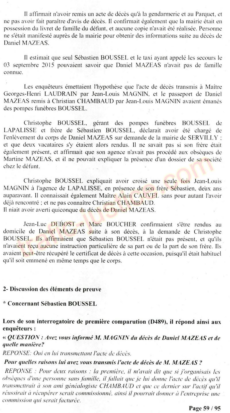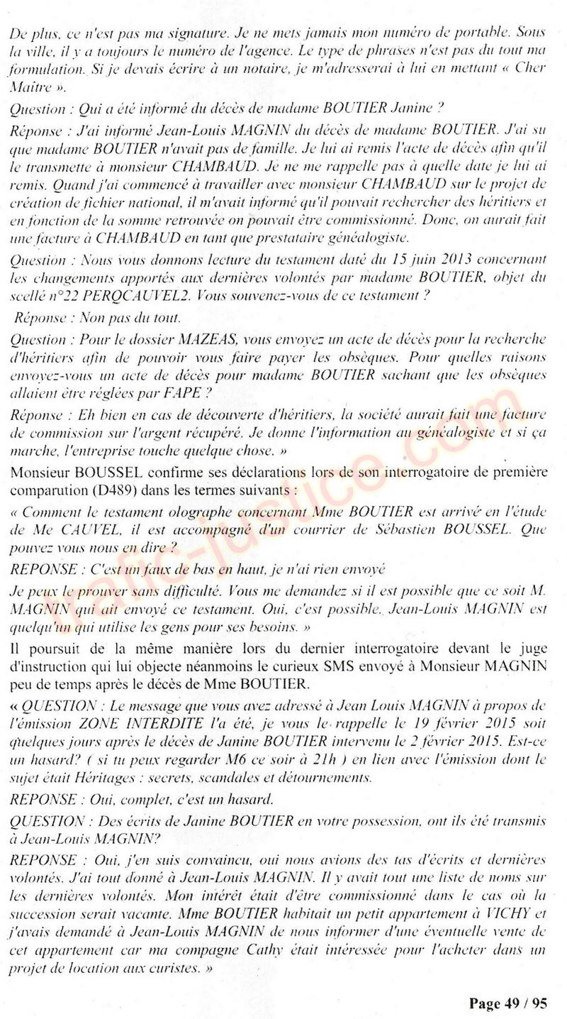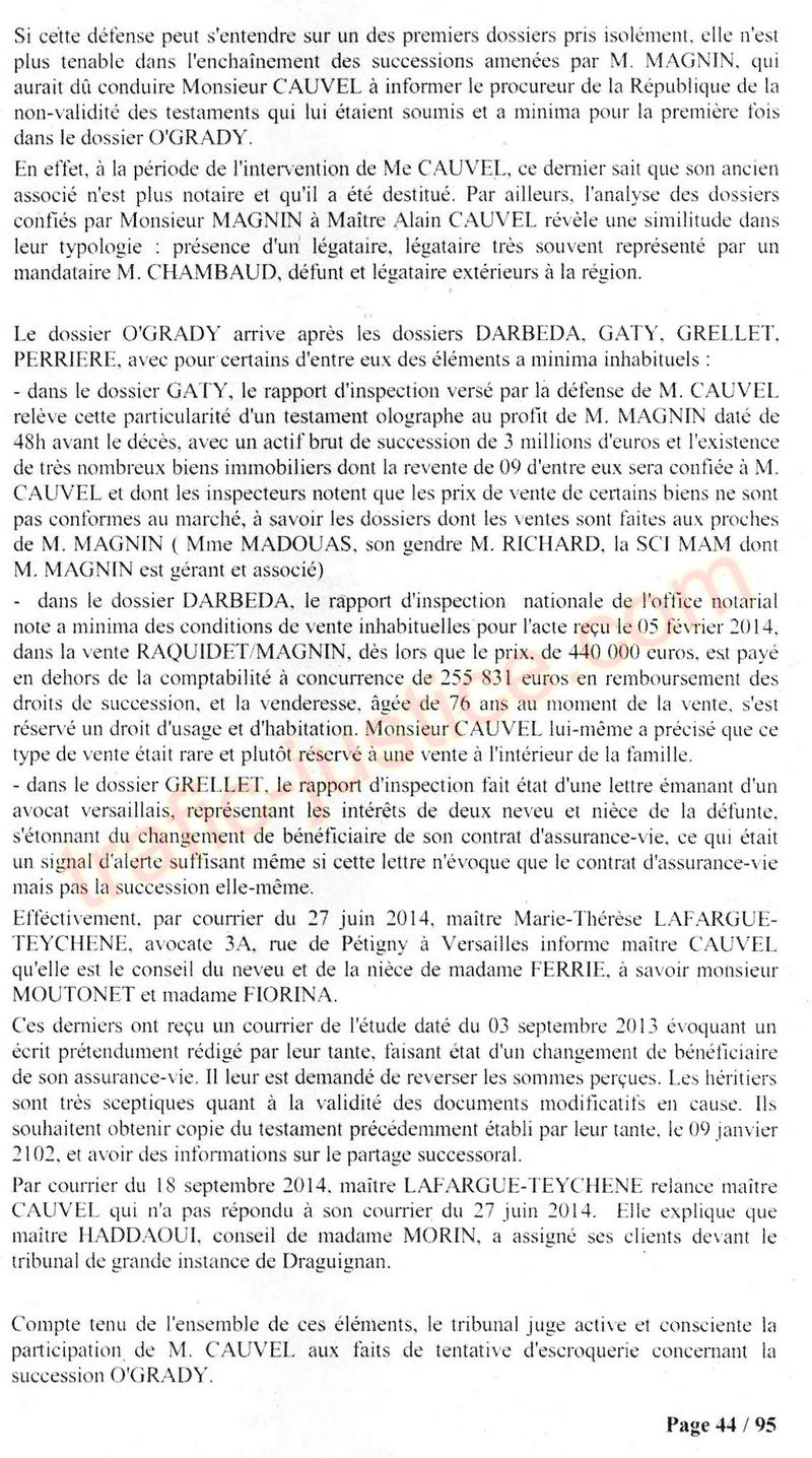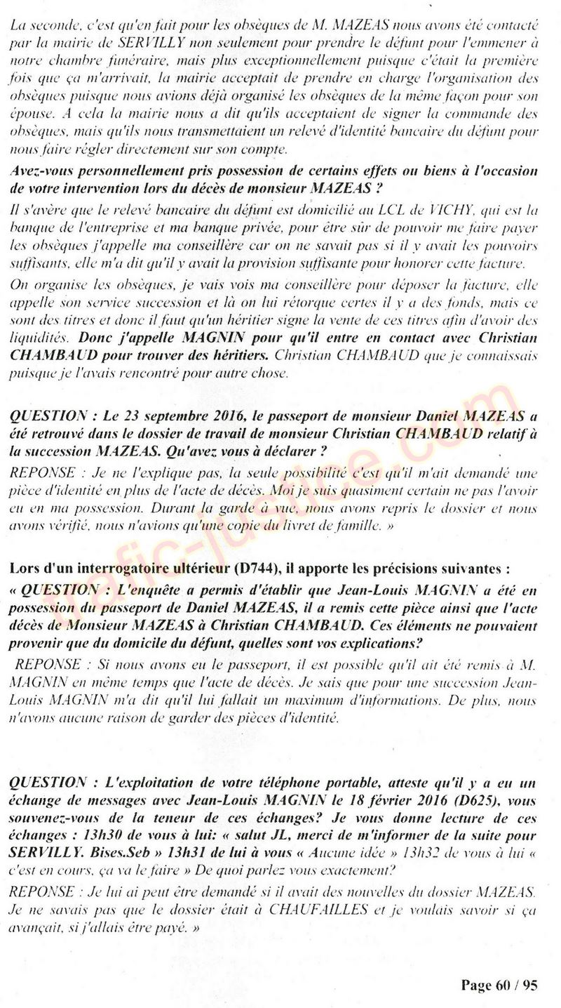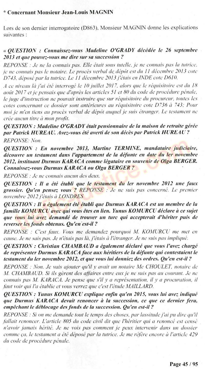 A Cusset (banlieue de Vichy) au lieu de les juger pour crimes de faux pour les détournements avec faux testaments, ils passent en correctionelle avec une quasi impunité. Des prescriptions des spoliés en découlent ! Alors que le notaire MAGNIN est un récidiviste avec un complice actif. (8 ans pour juger cette affaire ! Pourquoi pas après leur mort ?