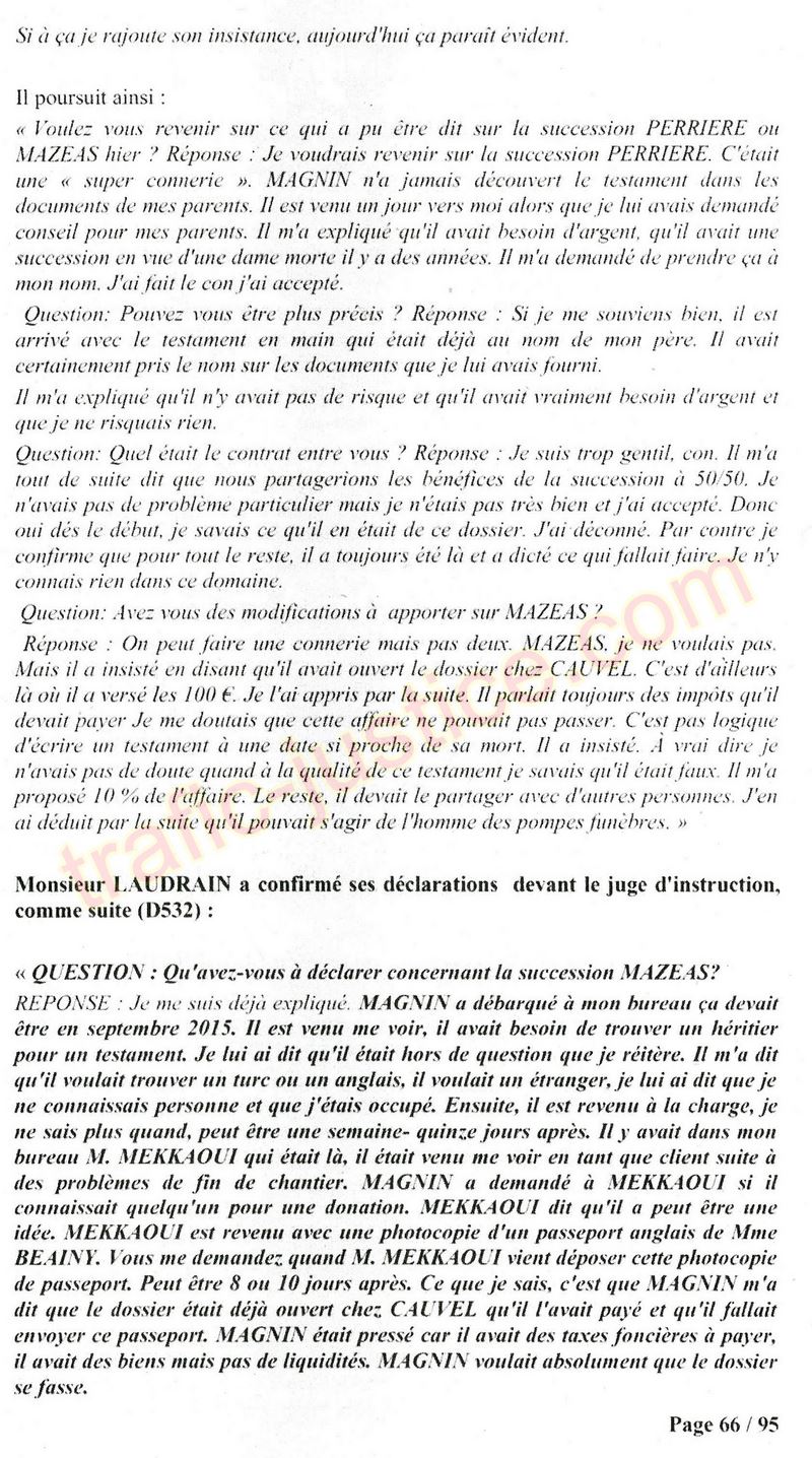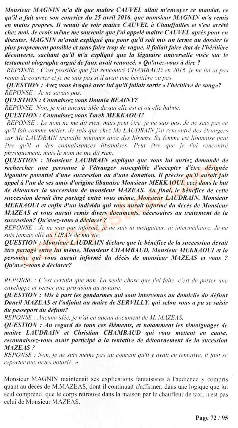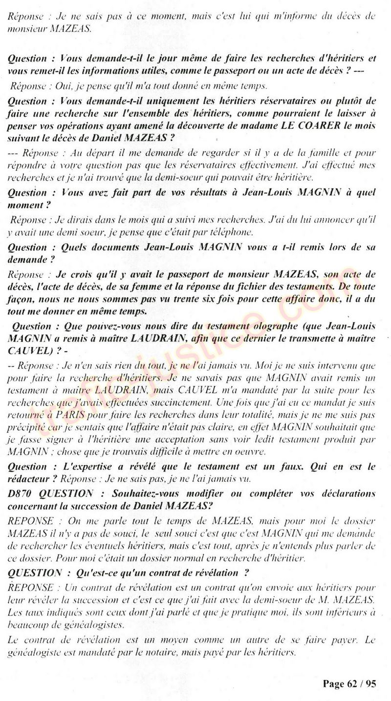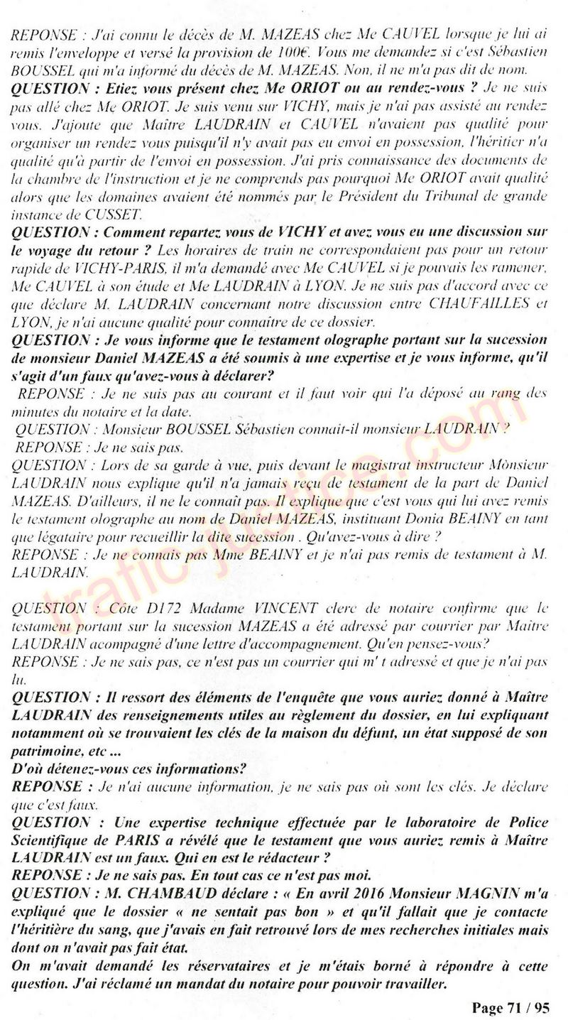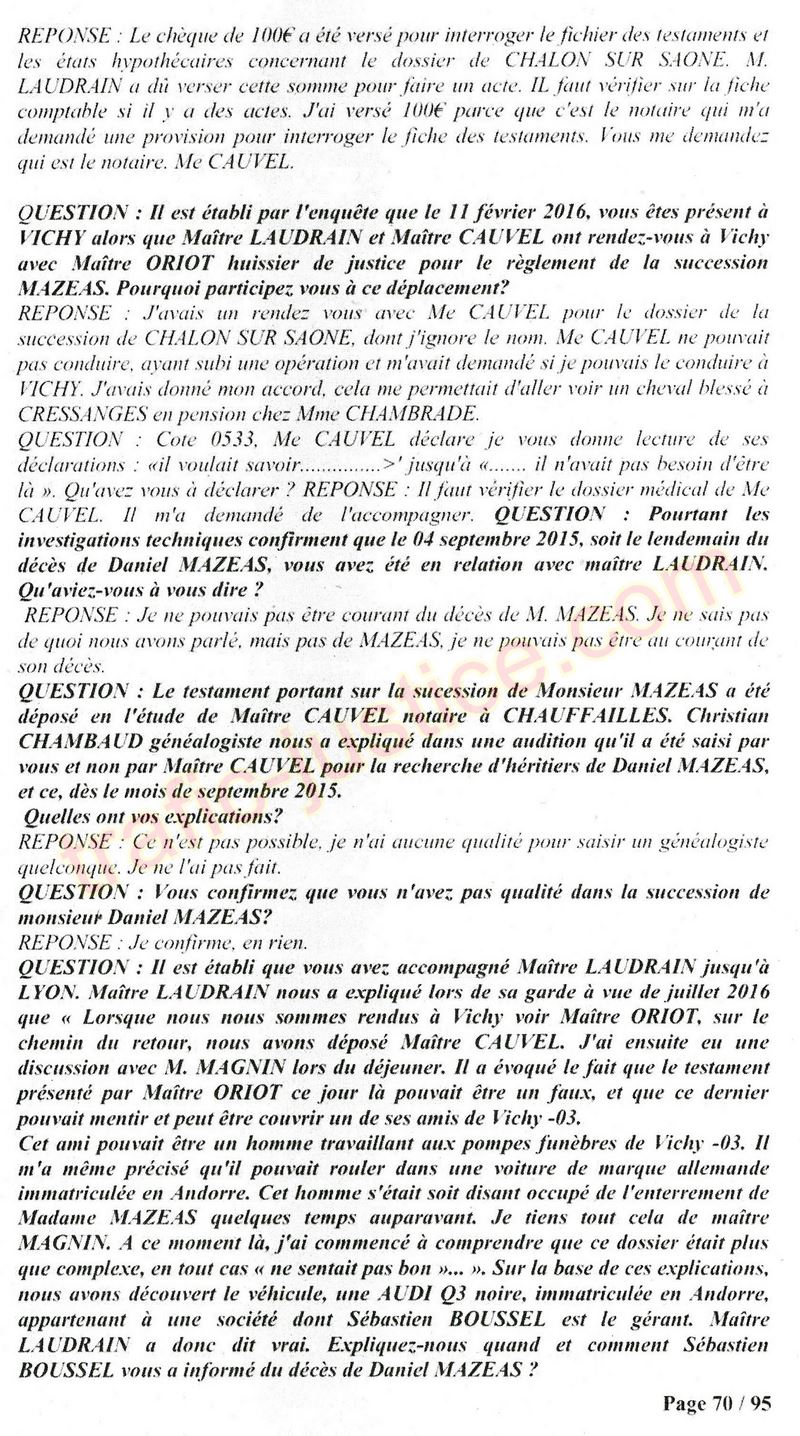 A Cusset (banlieue de Vichy) au lieu de les juger pour crimes de faux pour les détournements avec faux testaments, ils passent en correctionelle avec une quasi impunité. Des prescriptions des spoliés en découlent ! Alors que le notaire MAGNIN est un récidiviste avec un complice actif. (8 ans pour juger cette affaire ! Pourquoi pas après leur mort ?