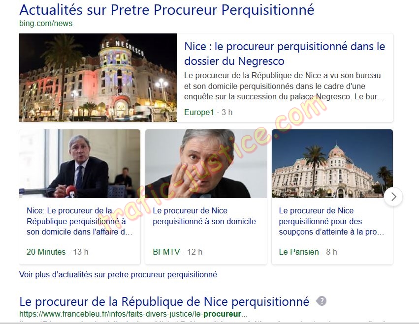 Selon des informations du Parisien , le procureur de la République de Nice a fait l'objet d'une perquisition mercredi à son domicile et dans son bureau du palais de justice. Une information judiciaire a été ouverte par le PNF et confiée aux juges Serge Tournaire et Aude Buresi pour connaître le rôle exact du plus haut magistrat local dans la succession de l'hôtel Negresco. En avril 2016, Le Point se demandait déjà : « Qui veut le magot du Negresco ? » L'affaire judiciaire ouverte pour abus de faiblesse, pendante depuis 2013, a connu, depuis, quelques rebondissements. Et le rôle du procureur n'est pas le moindre. Jeanne Augier, 95 ans, propriétaire du palace et réputée sans héritier, avait « ?rédigé? » un testament dans lequel elle léguait ses biens en partie à son chien et à l'un de ses employés. Ce dernier a depuis été mis en examen pour abus de faiblesse et le testament frappé de nullité.