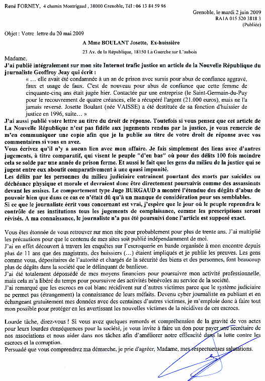 | L'efficacité d'Internet est prouvée par la demande de l'huissière révoquée. (Voir) (Imprimer ma réponse format WORD ) L'huissière attaque de la presse |
