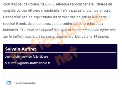 Trois huissiers et un ancien confrère d'une étude d'Évreux étaient cités directement mercredi devant la cour d'appel de Rouen par une de leur ancienne associée, qui les accuse de « détournement de fonds » et « faux en écriture publique ». L'affaire n'est pas nouvelle. En 2013, cette huissière, qui exerce depuis ailleurs en Normandie, avait rejoint leur Société civile immobilière (SCP). Deux ans et demi plus tard, elle était partie, poussée vers la sortie selon elle, pleine de doutes quant à l'existence d'irrégularités comptables au sein de l'étude. Soupçons confirmés au mois de septembre suivant. Depuis, une enquête de la chambre nationale des huissiers a relevé que 202 000 euros avaient effectivement été utilisés de manière non conforme entre 2011 et 2015. Si ces fonds, stockés sur un compte client inusité plutôt que sur le compte d'attente officiel, ont servi à payer les frais généraux de l'étude, une partie a aussi fini sur les comptes de certains huissiers et payé leurs impôts. Les intéressés ont écopé de sanctions disciplinaires, allant de la censure simple à deux mois d'interdiction temporaire d'exercice. Depuis, les sommes ont été intégralement remboursées. À l'époque des faits, la procureur de la République d'Évreux, en accord avec le parquet général à Rouen, avait décidé de laisser l'Ordre des huissiers sanctionner, sans poursuivre lui-même. « Le choix de la procédure disciplinaire n'est pas la meilleure chose qu'a faite le parquet général », estime désormais l'avocat général, après avoir constaté en plus qu'un des huissiers s'était trompé en énonçant la sanction disciplinaire reçue. « C'est la preuve que ça vous a marqué », assène-t-il. « Je ne plaisante pas » Cet homme et une autre huissière n'ont encaissé qu'un seul chèque chacun issu du compte client inusité. « Sur le compte client, il peut y avoir des honoraires en attente d'attribution » fait valoir Me Picchiotino pour sa cliente, petite-fille d'huissier. En acceptant un chèque provenant du compte client privé, les deux professionnels savaient qu'ils commettaient une faute déontologique, mais pas « un délit » plaident leurs avocats. Un huissier de 43 ans et une huissière de 59 ans, détenteurs majoritaires des parts de la SCP, ont eux beaucoup plus à justifier. À les écouter, la SCP, de fusion en rachat d'autres études, avait atteint une taille importante avec beaucoup de clients et vingt employés à payer. « Nous avons mal maîtrisé la conception », explique le quadragénaire. Pour sauver la société, ils auraient paré au plus pressé, en attendant le moment de rembourser. Un remboursement qui ne viendra jamais. Une théorie du sauvetage économique qui semble laisser la cour perplexe, quant à « la théorie de la partie civile, c'est qu'il n'y a jamais de retour et que personne ne réclamera les fonds », fait-elle remarquer. Bref, une fraude organisée. « De toute façon nous avons reconnu les faits », botte en touche l'huissière. S'en suit un échange entre la cour et l'huissière qui ne parvient à donner correctement le montant de ses revenus mensuels, sans qu'on sache si c'est sous le coup de l'émotion ou par volonté de minimiser. L'impression laissée par la scène est désastreuse et c'en est trop pour l'avocat général qui mitraille de question la prévenue, qui se sent mal. « Je ne plaisante pas, elle exerce toujours sur mon ressort (celui de la cour d'appel de Rouen, NDLR) » , rétorque l'avocat général, chargé du contrôle de ces officiers ministériels il n'y a pas si longtemps encore. Rasséréné par les explications du dernier mis en cause à la barre, il requiert 6 mois de prison avec sursis contre les deux principaux huissiers. Et « n'est pas opposé à ce que la condamnation ne figure pas sur le bulletin numéro 2 du casier judiciaire » . Délibéré le 14 janvier. Sylvain Auffret Journaliste, service faits divers s.auffret@paris-normandie.fr