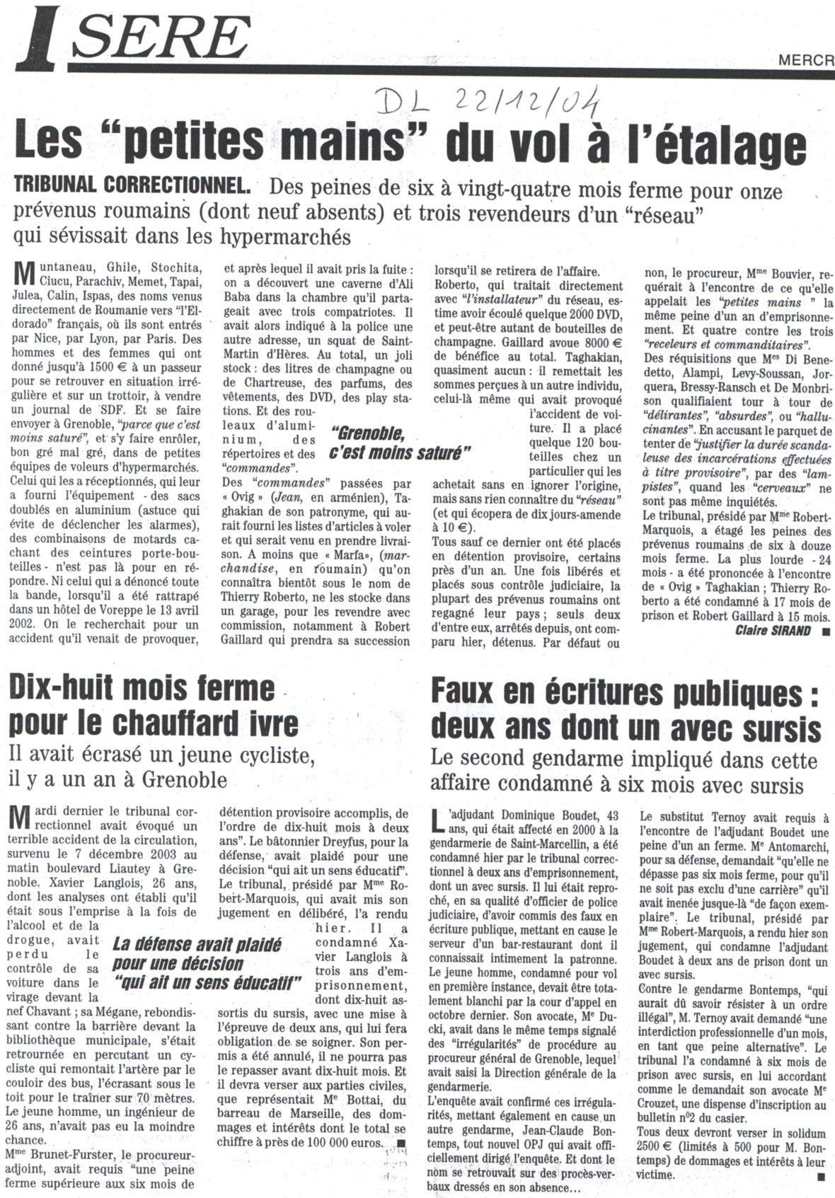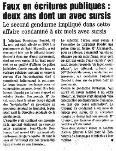 Il est écrit : L'adjudant Dominique BAUDT, 43 ans ... St Marcelin ...a été condamné à deux ans d'emprisonnement dont un avec sursis ...