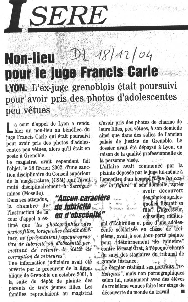 le juge Francis CARLE et ses photos de nus dans