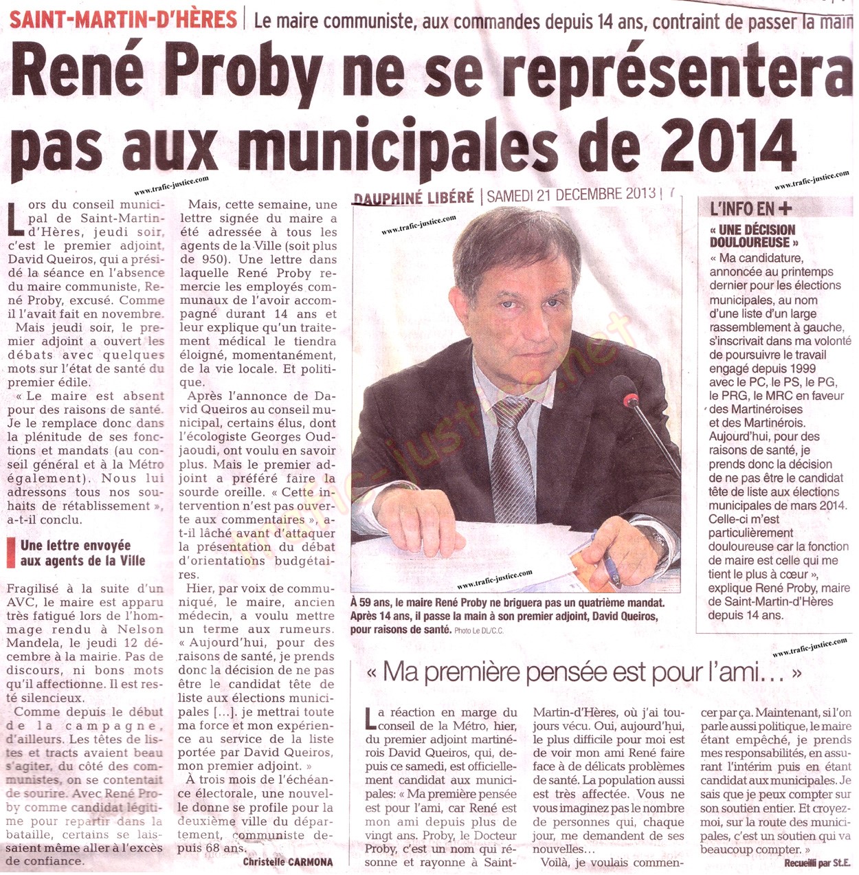 Texte recopié .... LE DAUPHINE LIBERE 1 SAMEDI 21 DÉCEMBRE 2013 |