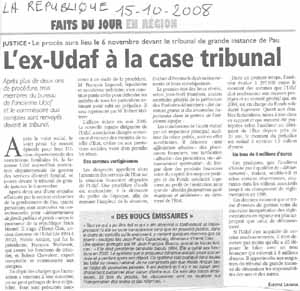 Ci-joint, quelques articles concernant le procès concernant des "responsables UDAF 64" qui ont détourné près de 8 M€, procès qui s'est tenu à PAU jeudi dernier.