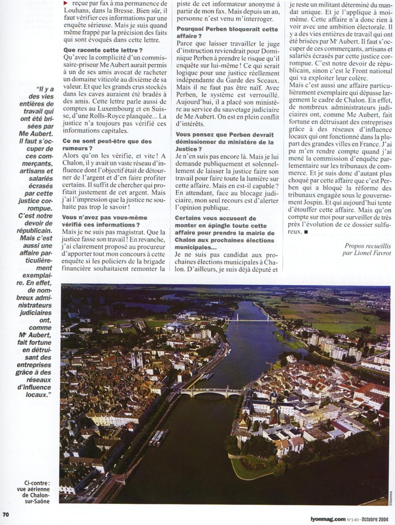 Source LYON MAG Octobre 2004     Les suites autres sources  La suite :  LYON MAG juin 2007 , mars 2007