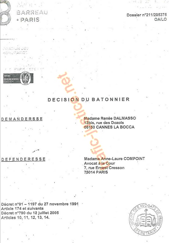 Un juge condamne l'avocate Anne-Laure COMPOINT (Recopie ci-dessous) alors que l'ordre des avocats (Laurence BEDOSSA) sanctionne la victime de 80 ans !