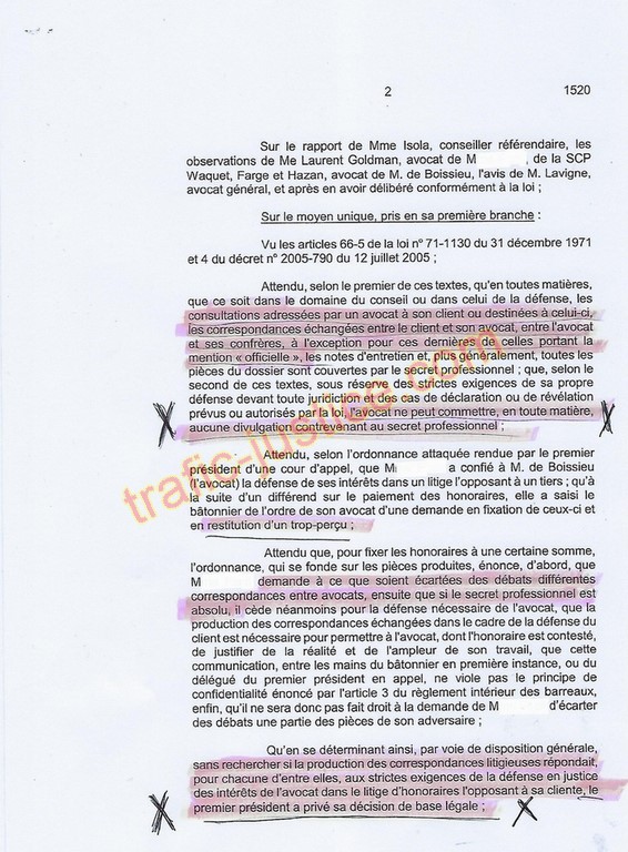 DE CASSATION pour AVOIR UTILISE DES SECRETS DE CORRESPONDANCES d'AVOCAT lors de contestations d'honoraires. D'autres victimes ? |