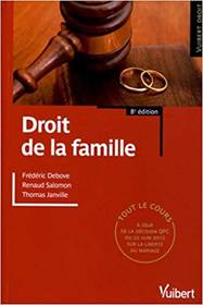 Refondu de fond en comble au cours des dernières années, le droit de la famille est non seulement une matière phare à l'université mais aussi une discipline qui intéresse particulièrement l'opinion publique. Parfaitement actualisé, enrichi de nombreuses références et accompagné d'exercices pratiques, l'ouvrage aborde l'intégralité du droit de la famille.Description du produit Présentation de l'éditeur Refondu de fond en comble au cours des dernières années, le droit de la famille est non seulement une matière phare à l'université mais aussi une discipline qui intéresse particulièrement l'opinion publique. Parfaitement actualisé, enrichi de nombreuses références et accompagné d'exercices pratiques, l'ouvrage aborde l'intégralité du droit de la famille. Biographie de l'auteur Frédéric Debove, Maître de conférences des universités et ancien membre du conseil national des universités, est directeur de l'Institut de droit et d'économie de l'université Paris II-Melun. Renaud Salomon est conseiller référendaire à la Cour de cassation et professeur associé (Paris XII). Thomas Janville, magistrat, est chargé d'enseignements (Paris II).