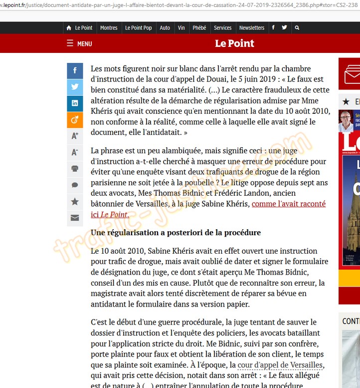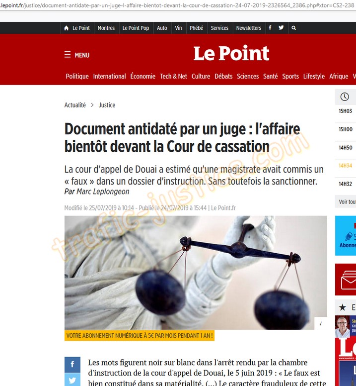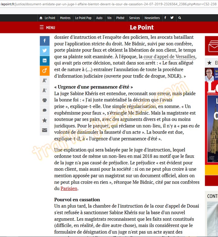 Article Le Point 25/07/2019 https://www.lepoint.fr/justice/document-antidate-par-un-juge-l-affaire-bientot-devant-la-cour-de-cassation-24-07-2019-2326564_2386.php#xtor=CS2-238