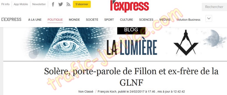 Solère, porte-parole de Fillon et ex-frère de la GLNF François Koch, publié le 24/02/2017 à 17:46 , mis à jour à 12:42:42