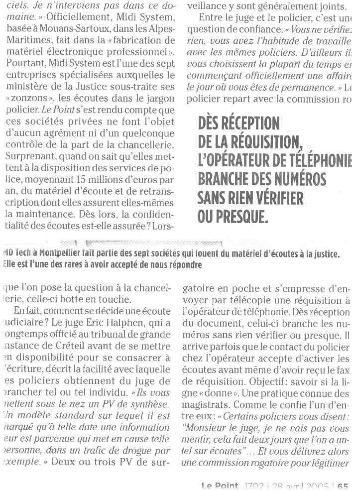 Source le point du 28 avril 2005 Voir page 62 , 63 , 64 schéma , 64 texte , 65a , 65b , 66 , 67 , 68 , 69