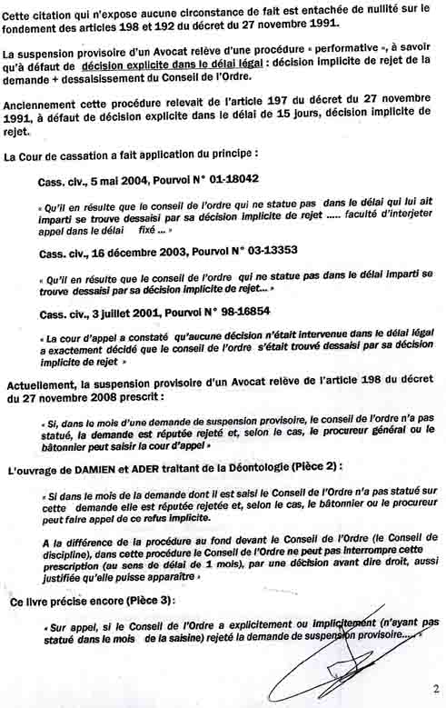 Actuellement, la suspension provisoire d'un Avocat relève de l'article 198 du décret du 27 novembre 2008 prescrit :