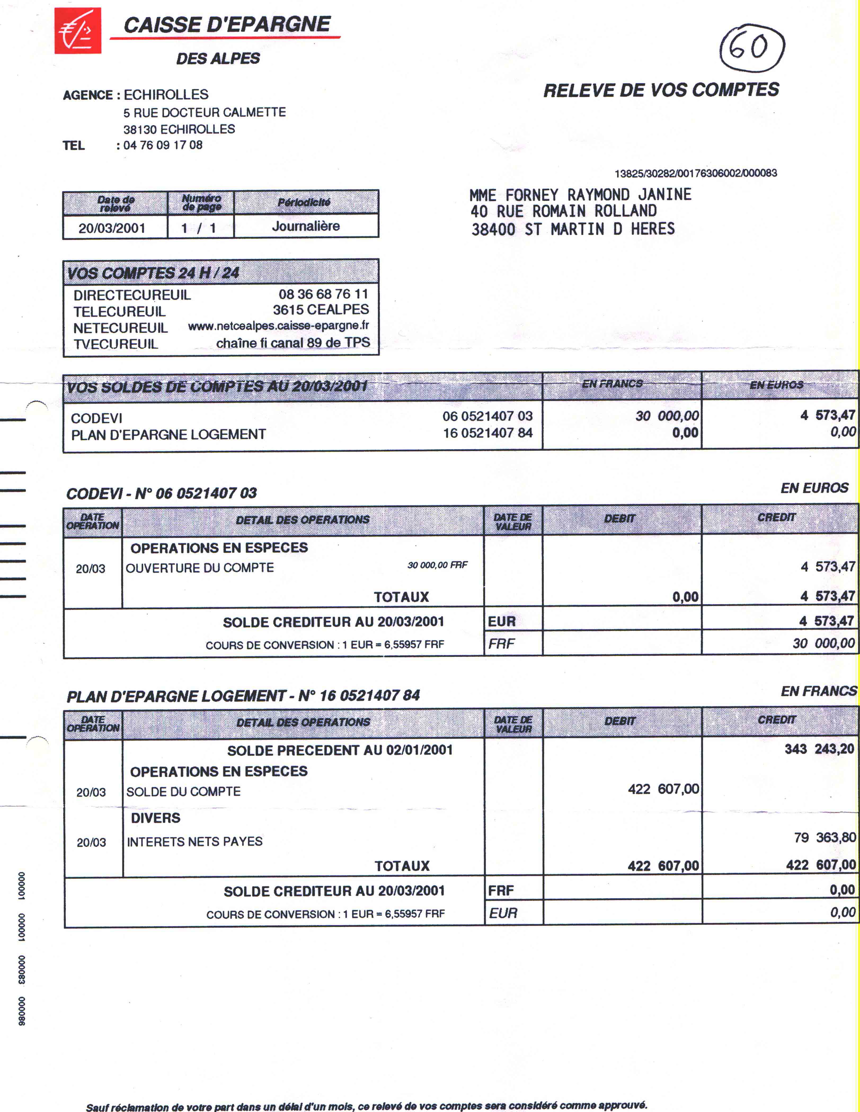 !!! dont une partie 422.000,00 francs a refait surface en espèces