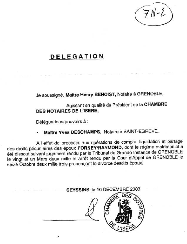 Le notaire escroc Deschamps Yves se justifie, enfin. Délégué par BENOIST ?