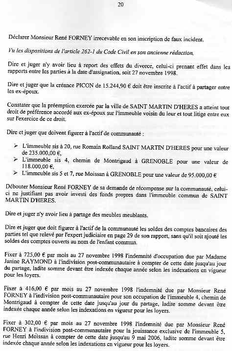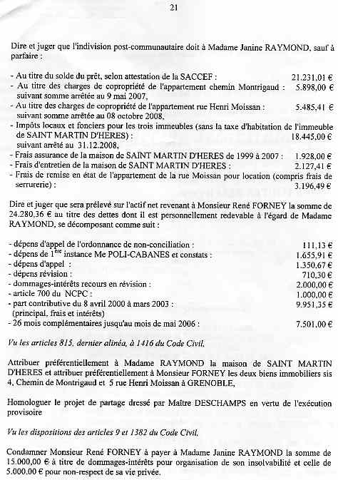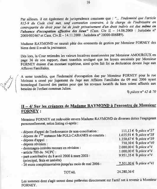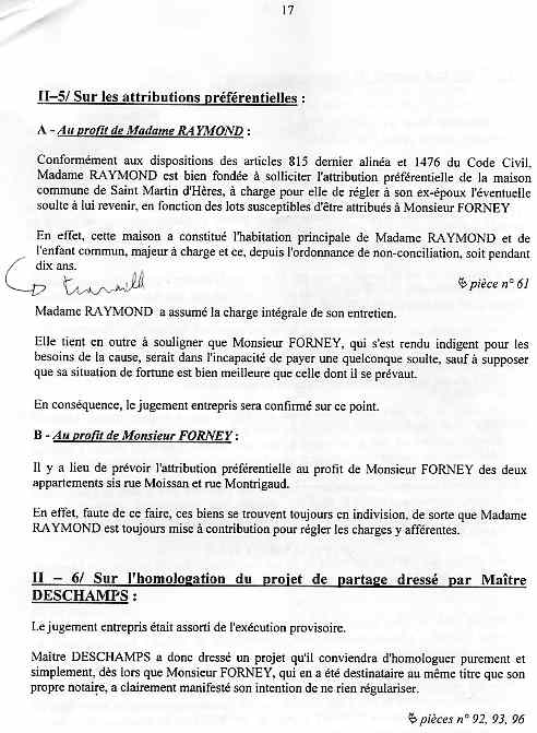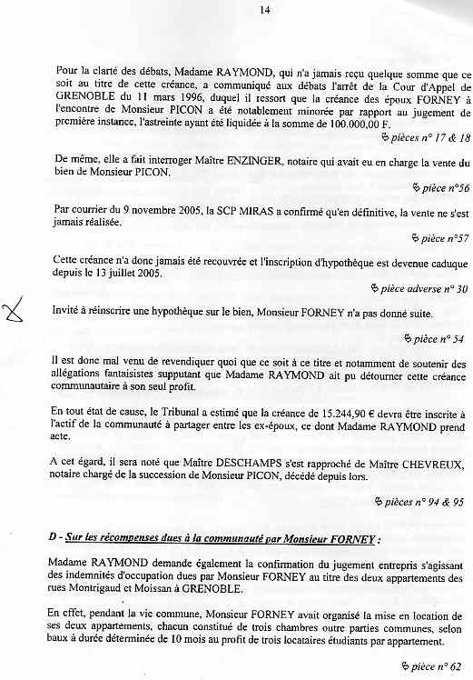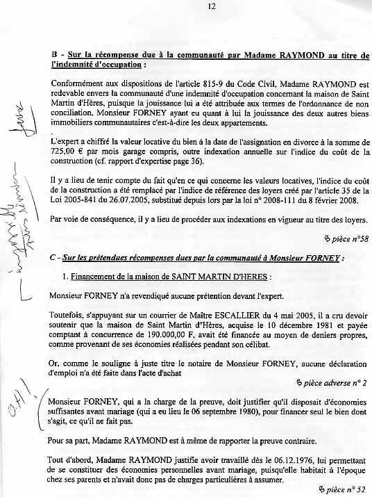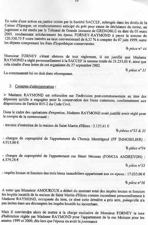| Accueil Le juge LEGER Jean-Claude truand du réseau au service des mafieux de l'immobilier dont mon ex-épouse qui a délivré pendant 15 ans des permis de construire ! Voir la réponse partielle (à cause du manque de pièces adverses non communiquées ) aux conclusions ci-dessous sur une liquidation de communauté d'une spoliation par des escrocs en bandes organisées dont des policiers, gendarmes, avocats, avouées, huissiers, experts, notaire, juges ... ? |