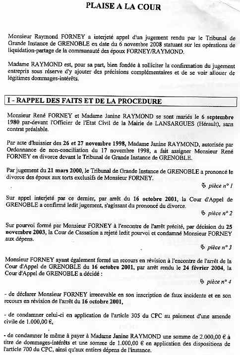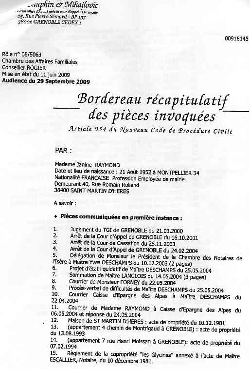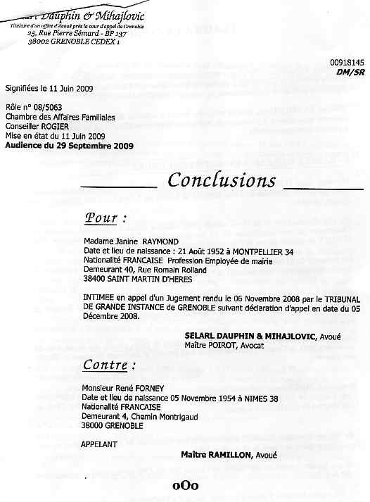 Réponse du 7 sept 2009 à ces conclusions adverses présentées le 11 juin 2009 et 17 juillet 2009, après le blocage total de mon avoué désigné Mme RAMILLON (voir) |