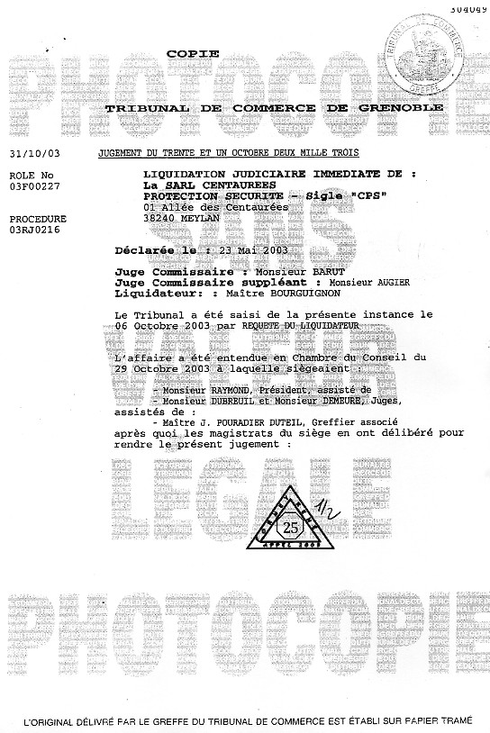 | Accueil Le juge LEGER Jean-Claude truand du réseau ? Pièces jointes aux conclusions d'appel sur une liquidation de communauté à l'origine d'une spoliation par des escrocs en bandes organisées dont des policiers, gendarmes, avocats, avouées, huissiers, experts, notaire, juges ... ? Preuves ci-après |