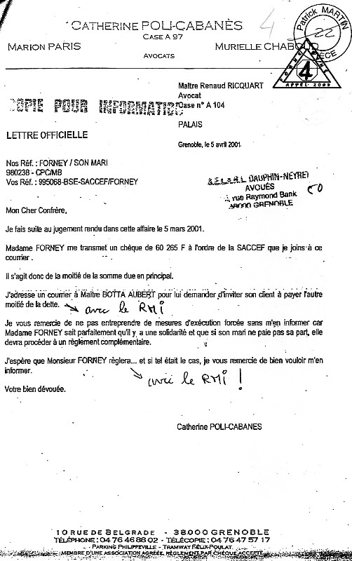 | Accueil Le juge LEGER Jean-Claude truand du réseau ? Pièces jointes aux conclusions d'appel sur une liquidation de communauté à l'origine d'une spoliation par des escrocs en bandes organisées dont des policiers, gendarmes, avocats, avouées, huissiers, experts, notaire, juges ... ? Des preuves ci-après |