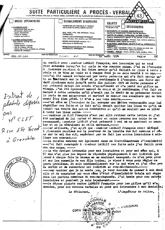 | Accueil Le juge LEGER Jean-Claude truand du réseau ? Pièces jointes aux conclusions d'appel sur une liquidation de communauté à l'origine d'une spoliation par des escrocs en bandes organisées dont des policiers, gendarmes, avocats, avouées, huissiers, experts, notaire, juges ... ? Preuves ci-après |