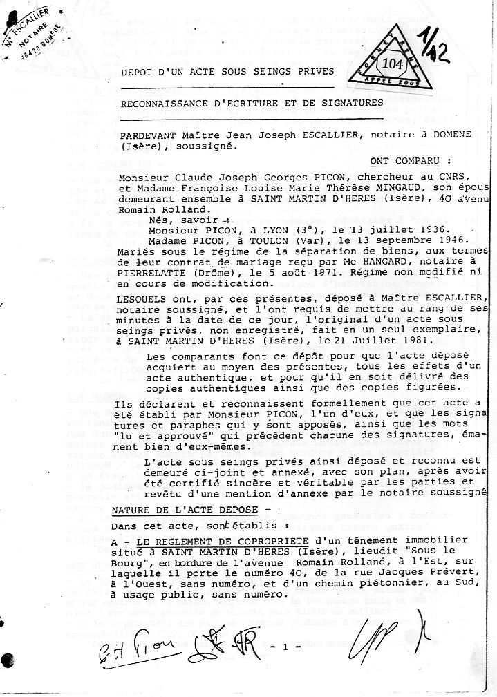 | Accueil Le juge LEGER Jean-Claude truand du réseau ? Pièce jointe aux conclusions d'appel sur une liquidation de communauté à l'origine d'une spoliation par des escrocs en bandes organisées dont des policiers, gendarmes, avocats, avouées, huissiers, experts, notaires, juges, élus, ... ? Preuves ci-après |