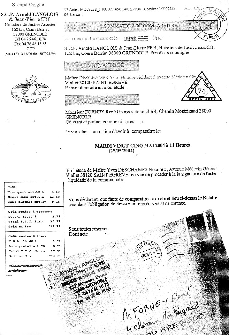 | Accueil Le juge LEGER Jean-Claude truand du réseau ? Pièces jointes aux conclusions d'appel sur une liquidation de communauté à l'origine d'une spoliation par des escrocs en bandes organisées dont des policiers, gendarmes, avocats, avouées, huissiers, experts, notaire, juges ... ? Preuves ci-après (C'est cet huissier Anold LANGLOIS qui était chargé d'organiser l'insolvabilité du ripoux CWIKOWSKI) |