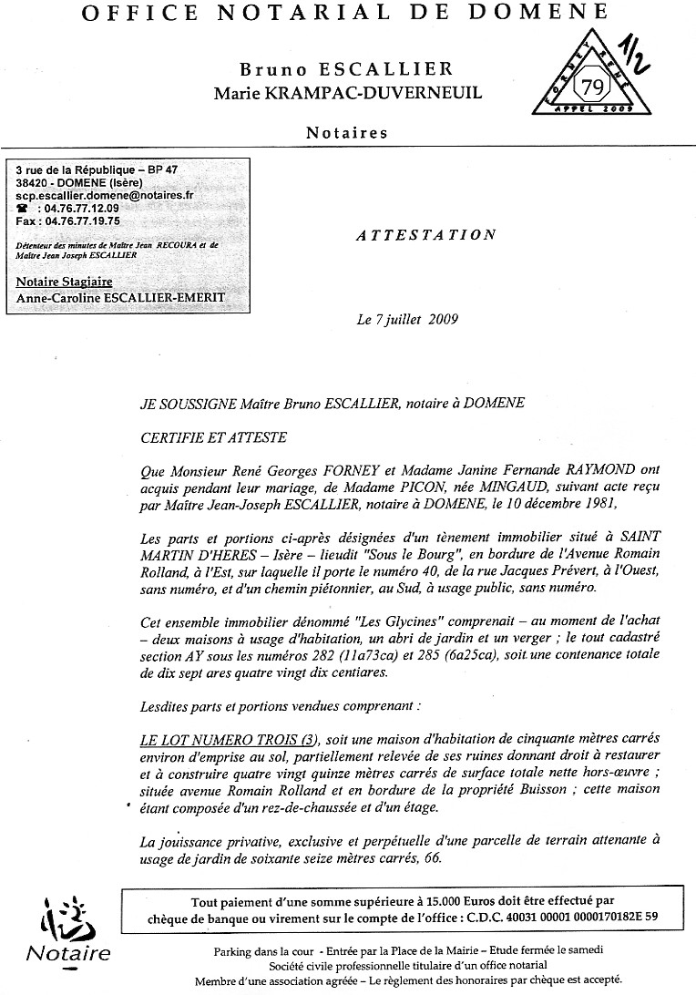 (Un terrain de 1798 m2 convoité par des élus mafieux de la mairie de St MARTIN D'HERES) Présentée le 7 juillet 2009, cette pièce est dans les autres procédures : voir |