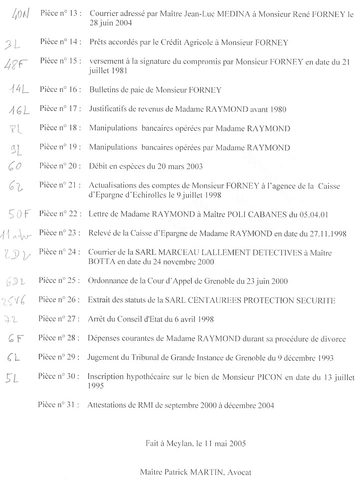 Bordereau des conclusions déposées lors de l'assignation au partage de la communauté et communiquée à l'expert désigné Me