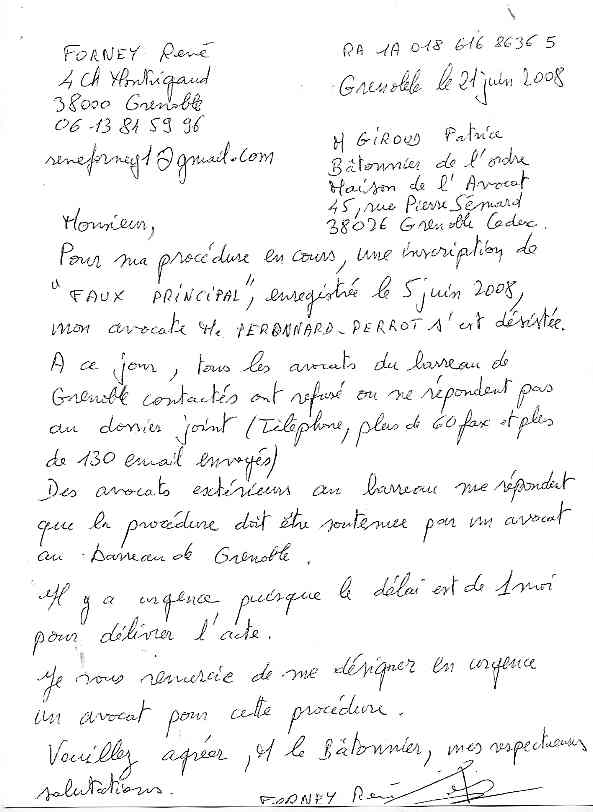 Pourtant, il connaît les ripoux complices condamné pour faux en écriture privée et corruption organisateur de la dépossession de René FORNEY en sollicitant un notaire. Plainte mais impossible d'obtenir copie de l'instruction !