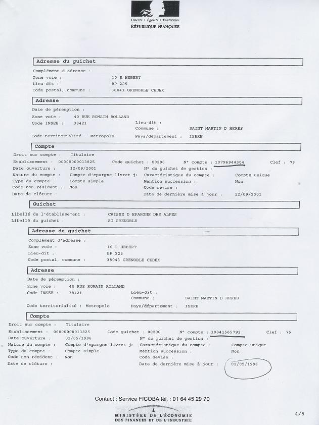 Mai 2007, deux ans pour que l'expert daigne demander les extraits FICOBA ! Pages 1 , 2 , 3 , 4 , 5 |