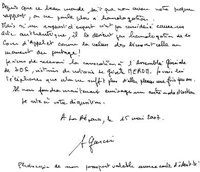 J'ai aussi observé la collusion de l’expert AMOUROUX avec des notaires « escrocs » . C'est constaté par d’autres justiciables dont Sylvette GARCIN au sujet du détournement d'un héritage. Elle joint son témoignage ci-dessous :