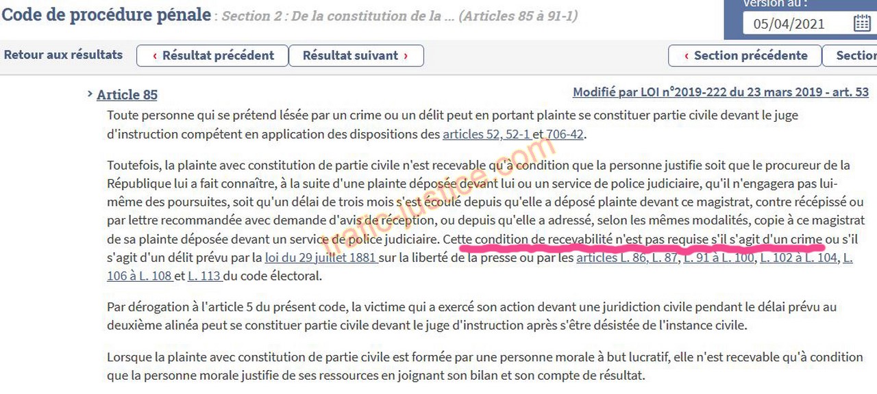 | Accueil Des lois qui s'imposent au juge pour le crime de faux récupéré chez l'huissier ROBERT / MESAGHRANI le 6 août 2020., présentés au mémoire devant la chambre de l'instruction le 7 avril 2021 - 2022 ? Le recours civil impossible 2025 Marie GOUVERNEUR valide les faux ! | ||