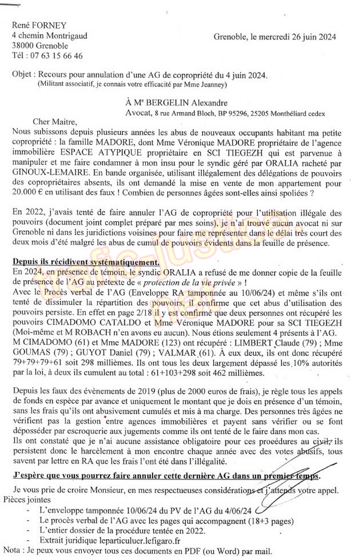 7 - Le dossier de demande aux avocats en annulation de l'AG de 2024 (3 pages +20 pages du compte rendu de l'AG daté 6juin 2024)