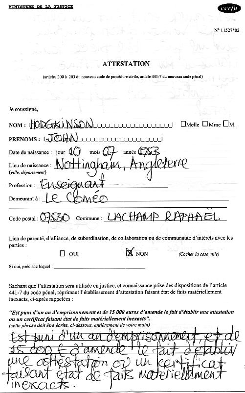 Témoignage de M. HODGKINSON (Ses publications voir)