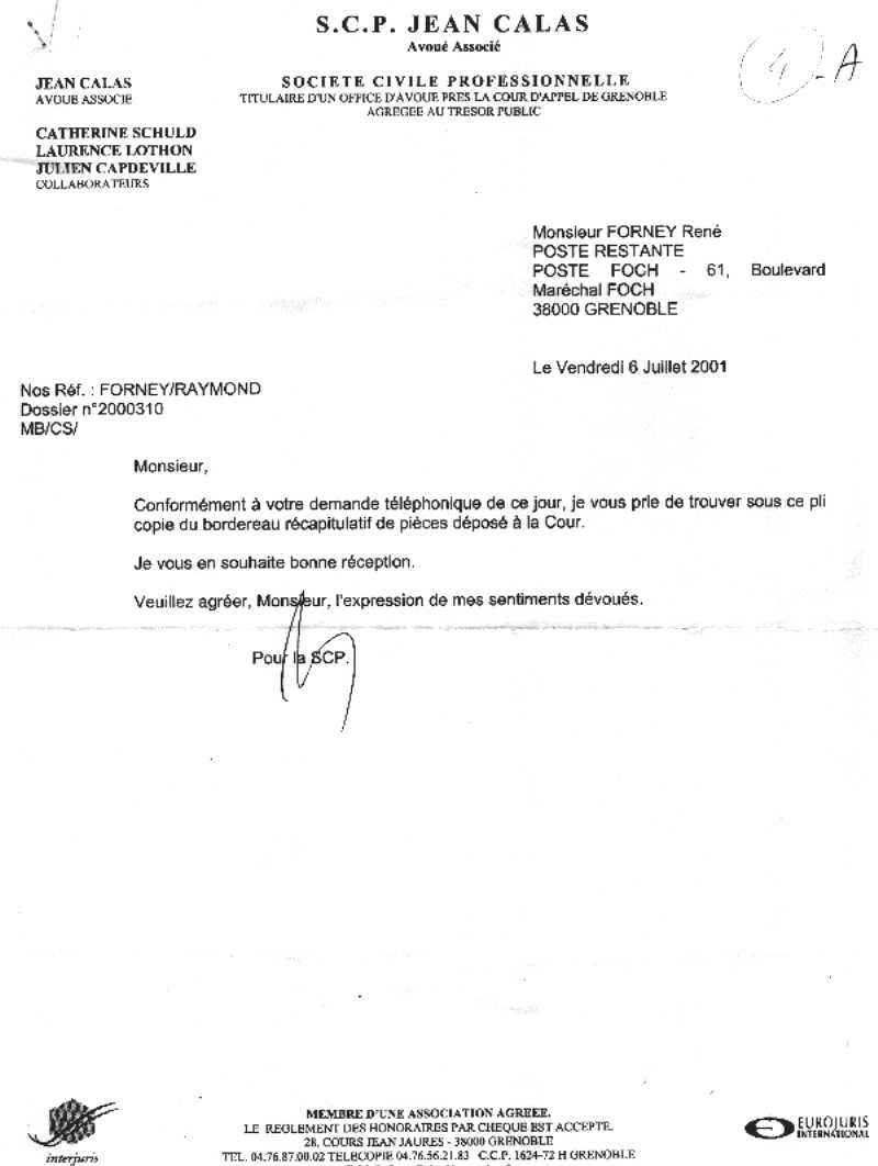 Ecoutant le 4 juillet 2001, la plaidoirie sommaire et médiocre de Dreyfus Denis, mon nouvel avocat après Botta, je comprenais qu'il y avait un nouveau bardereau sur lequel mes pièces essentielles avaient éte retirées. Ce qui était exact ! Mon dossier de plaidoirie présenté par Dreyfus était quasiment vidé de sa substance !