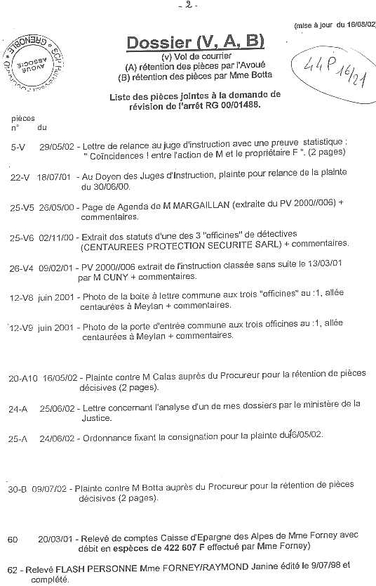Bordereau de Pièces de la SCP Hervé-Jean POUGNAND : Pièces ( P ) (V,A,B) (F) (D) (J:19/21) J:20/21 liste 21/21