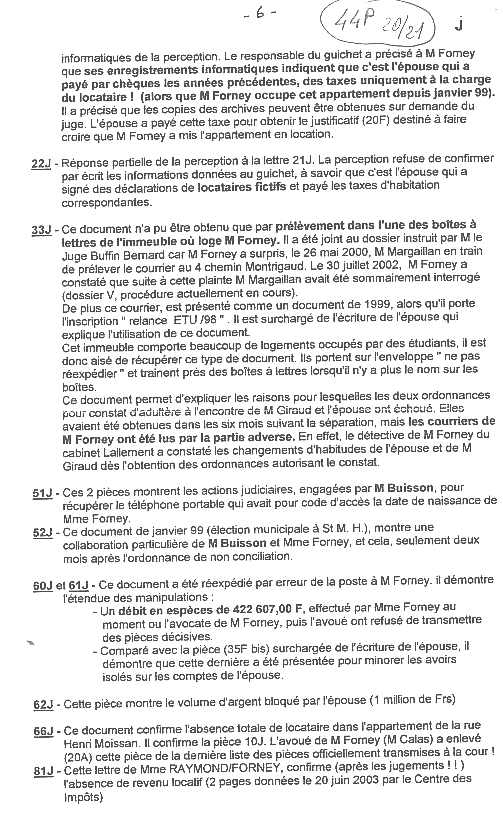 (photocopiées par Me POUGNANT à partir de l'original 40P de M FORNEY)