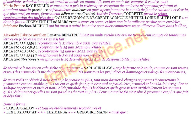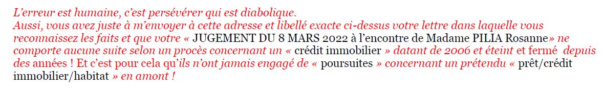 | Ecoutez Rosanne (Sylvie Charles traite aussi de ce sujet) Rosanne questionne sa banque sur son fonctionnement, en représailles des relations font vendre son appartement aux enchères le 8 septembre 2023 au tribunal de Saint Etienne ! Jugement du 8 mars 2022 CAUSE DE LA VENTE AUX ENCHERES PUBLIQUE AU 8 SEPEMBRE 2023 AU TRIBUNAL DE ST ETIENNE à 14h Par la Présidente Andréa TOURETTE ... ... ... ... ... Extraits de réponses |