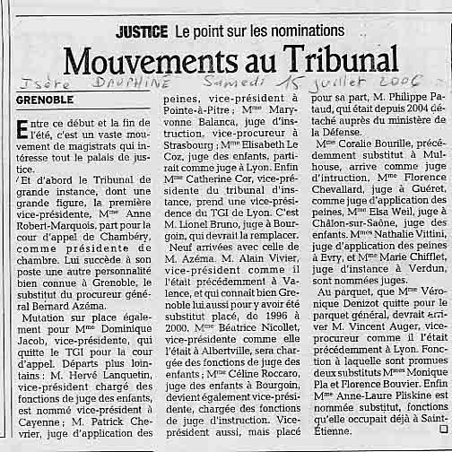 Mouvements au tribunal de Grenoble. Changements à la cour d'appel (DL 15 juillet 2006)