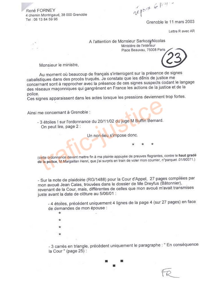 Pièce complémentaire concernant le complément de conclusions daté du 14/11/05 et enregistré le 16/11/05. Ci-dessous les signes suspects dans les documents judiciaires. Des étoiles de l'avocate adverse Poirot Martine