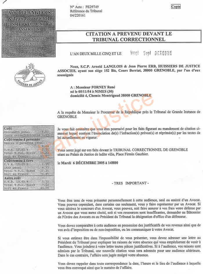 devant le tribunal correctionnel de Grenoble le 6 décembre 2005