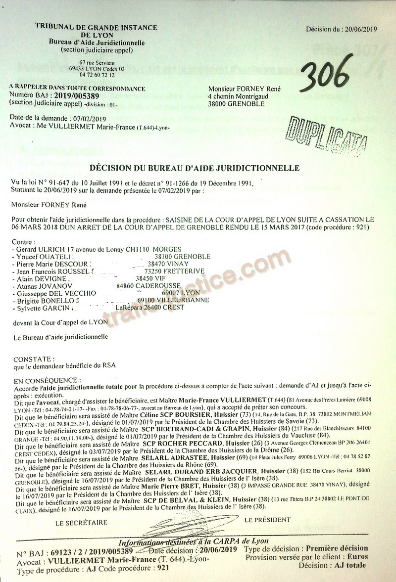 Les 2 juges mafieux protégés accusateurs d'outrages GROZINGER et ALLARD n'étaient ni présents ni représentés ni n'avaient produit des conclusions pour leur défense. Résultats un simulacre d'audience pour rejuger : Fausses accusations, faux PV de police,