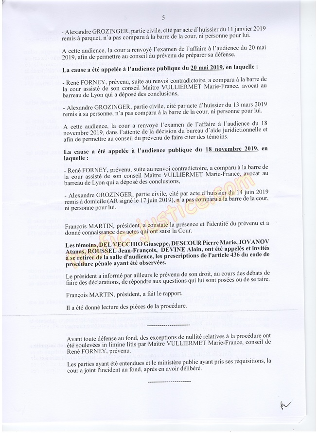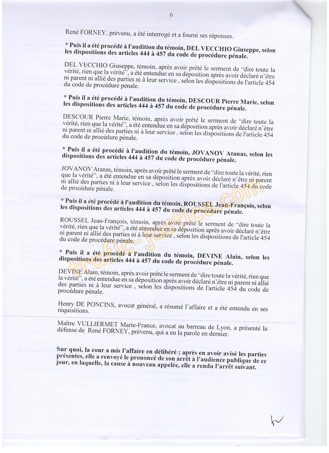 René FORNEY à l'audience du 18/11/19 où les témoins ont constaté que le procureur DE PONCINS Henry dormait..