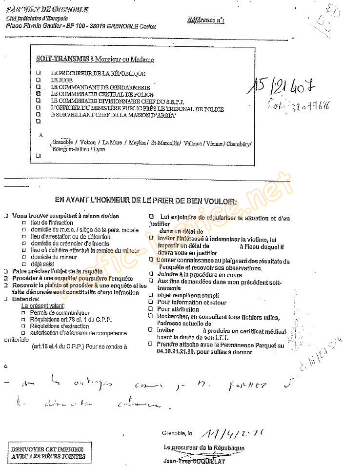 | Accueil - Du 10/11/2016 au 13/07/2017 : 8 mois encore un fois en prison avec des faux PV remis par la cour de LYON en 2019 Du remplissage de pièces d'une accusation vide extraites d'une plainte contre des notaires en cours du 2 avril 2010 à août 2019 ! Oliver NAGABBO le procureur a aussi caché, ces documents à la Cour de cassation qui a reconnu les méthodes illégales sans avocat de mise en détention de René FORNEY aux prétextes "outrages" pour se venger de ses publications du pot de vin de 83.000 euros (valeur 2019) versés aux notaires de l'étude Yves Nicolas Olivia DESCHAMPS à St Egrèves pour organiser la dépossession de René FORNEY Ces faussaires sont tous passibles du CP 432-4 (30 ans de prison) Témoignez à René FORNEY 07 63 15 6646 |