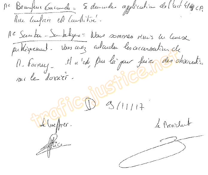 Ceux deux avocats préfèrent ne rien dire car ils pensent que les témoins ont enregistré les demandes de M. FORNEY qui étaient seulement :