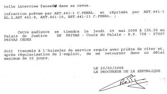 Audience à Privas (07) reportée au 18 septembre 2008