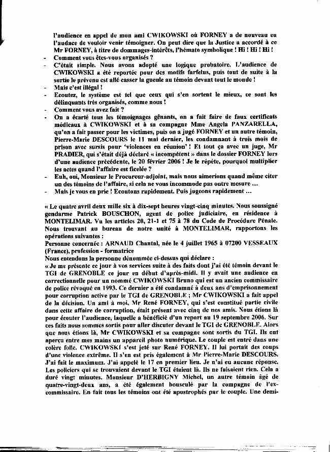 l'audience en appel de mon ami CWIKOWSKI où FORNEY a de nouveau eu