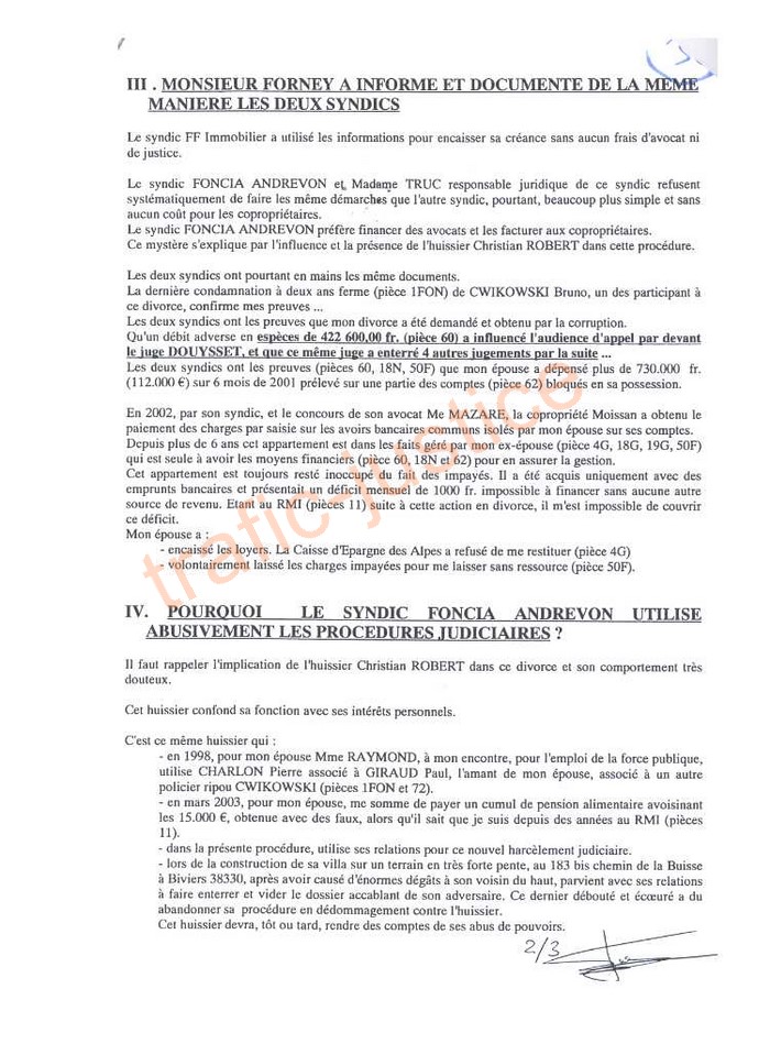 Pièce complémentaire concernant le complément de conclusions daté du 14/11/05 et enregistré le 16/11/05. Signifié par Christian ROBERT et jugé par Mme ROBERT Jaqueline !. Voir page 1 , 2 , 3