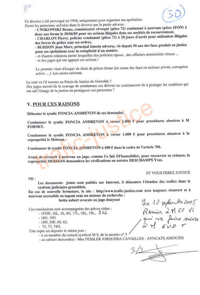 Pièce complémentaire concernant le complément de conclusions daté du 14/11/05 et enregistré le 16/11/05. Signifié par Christian ROBERT et jugé par Mme ROBERT Jaqueline !. Voir page 1 , 2 , 3